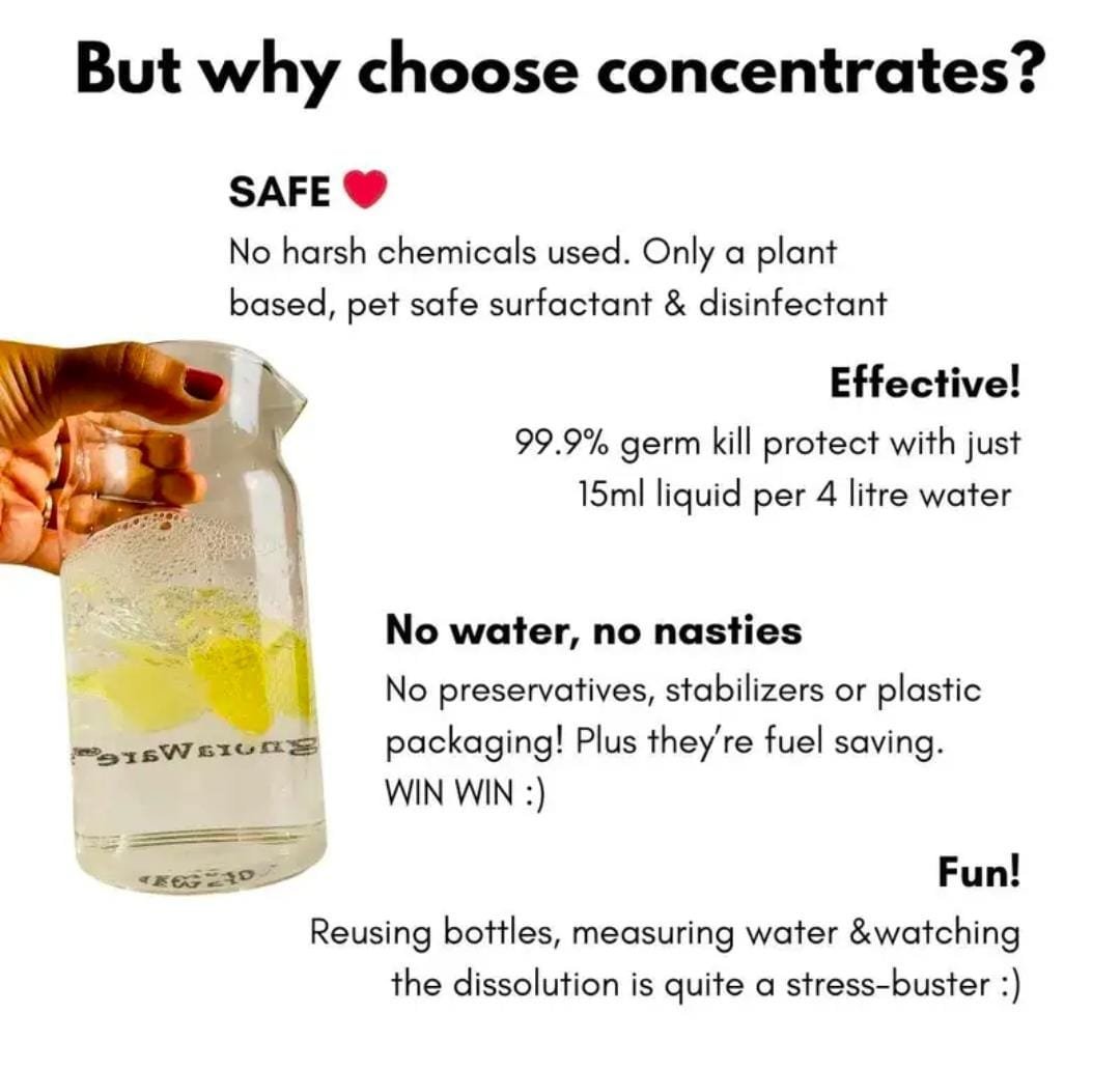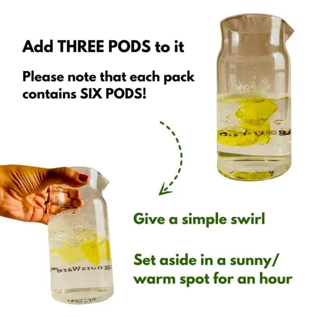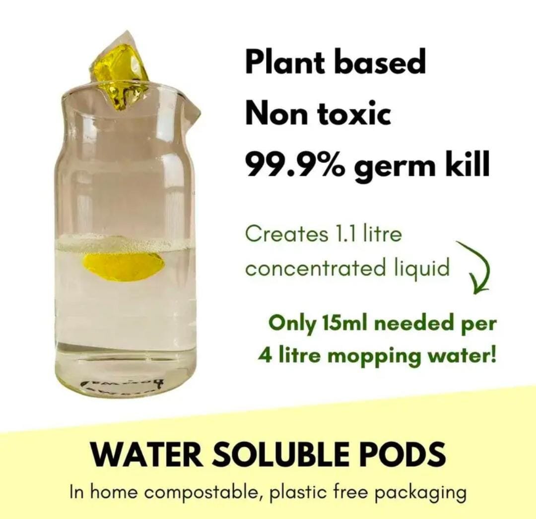 USE: Their outer cover is made up of polyvinyl alcohol (PVA/PVOH), which dissolves in water, releasing the concentrate inside. In about an hour, a clear, fragrant solution is ready, which you can use as usual i.e. adding 15ml of it into a bucket of 4 litres of water to mop the floor. Please refer to the leaflet inside for detailed instructions on mixing; the images on the left will help you get an idea as well.