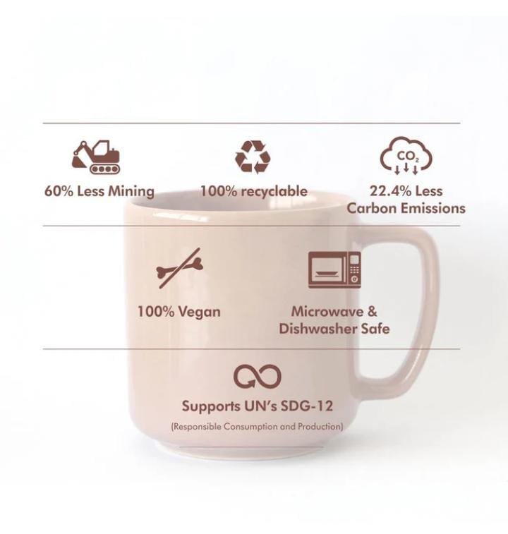 This elegant handcrafted mug is made from recycled ceramics. It is 100% food-safe, microwave friendly and reduces mining of natural resources by up to 60%. Emitting up to 22.4% less carbon than conventional ceramics. Each piece is unique and does not look exactly the same as others.