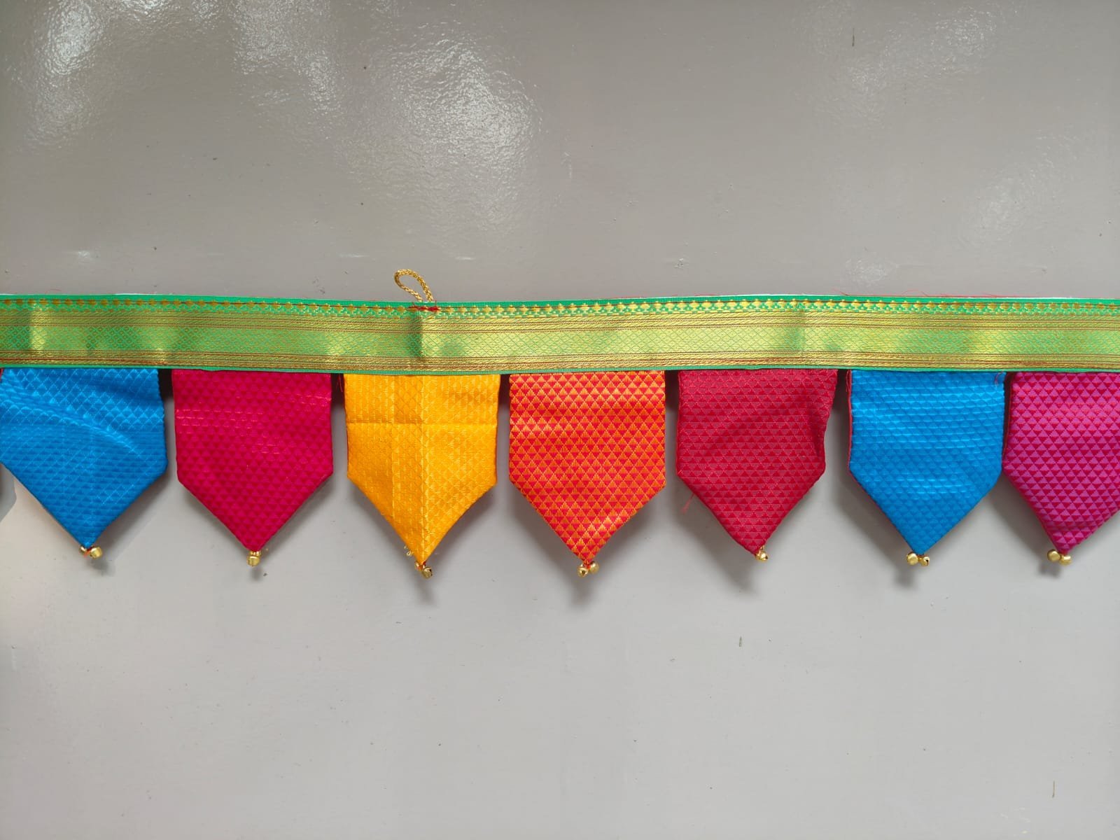 In traditional Indian culture, a toran is hung above the main entrance to welcome guests and attract good fortune and blessings. Torans can be made from a variety of materials, including leaves, flowers, precious stones, paintings, and more