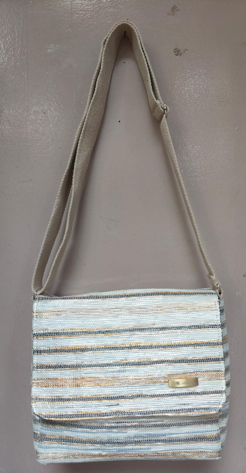 Trendy, youthful and innovative is what you can expect from reCharkha Upcycled Handwoven Messenger Bag. Carry it as a Sling , a Small Tote or as an Arm Bag!