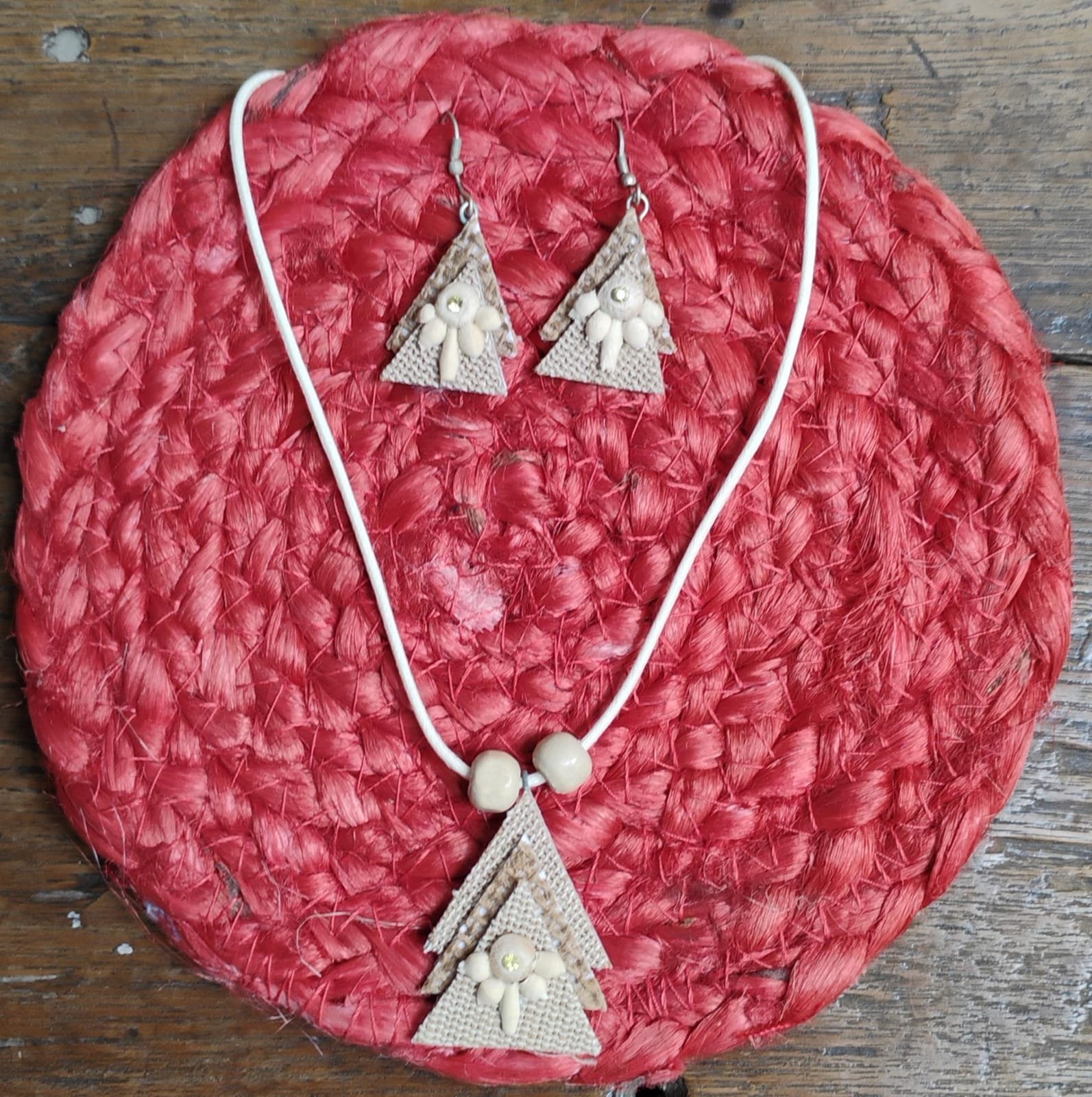 Embrace earthy elegance with handcrafted short jute necklaces.