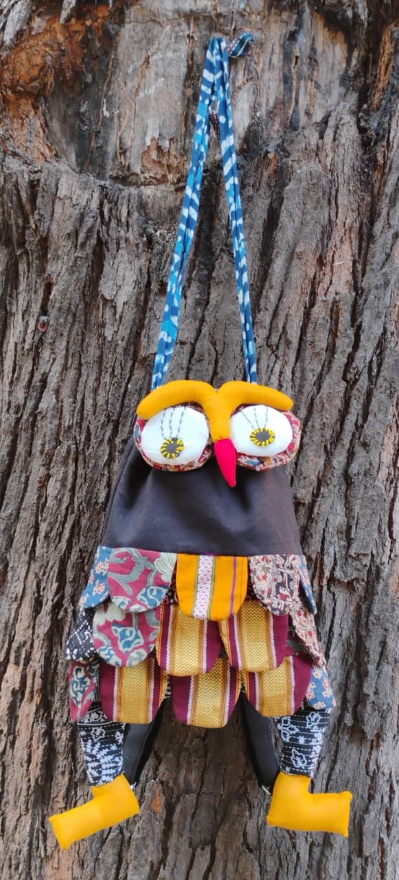 Upcycled owl backpack